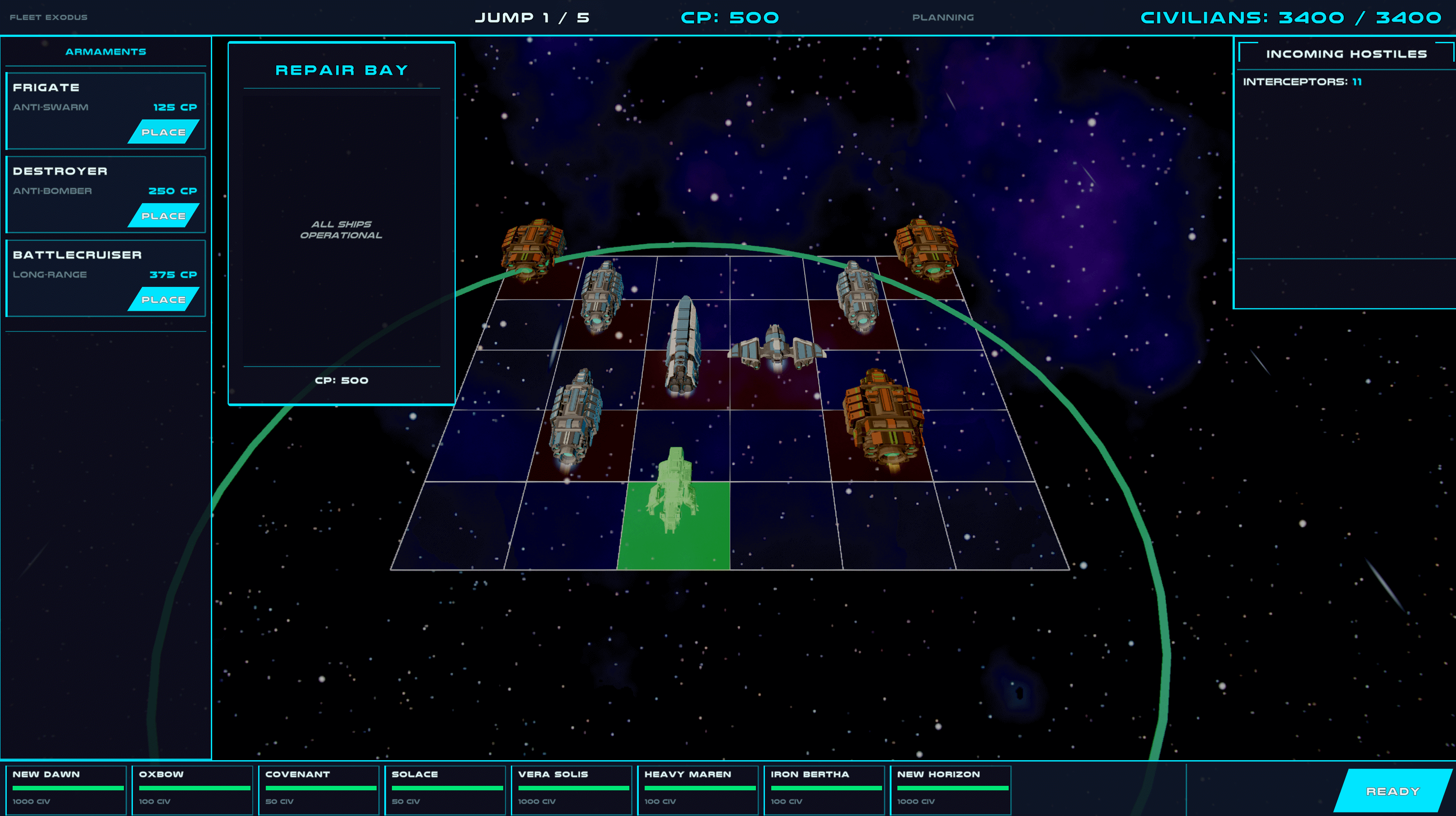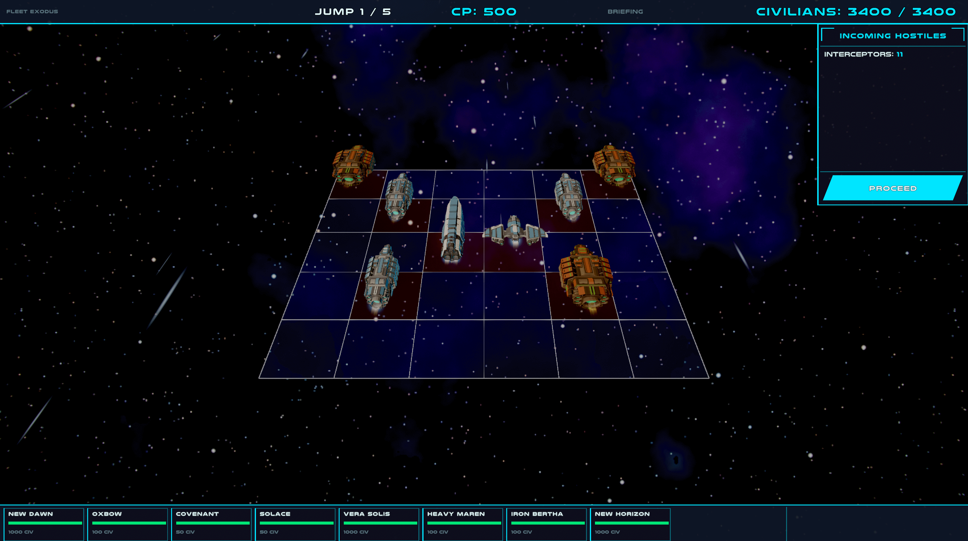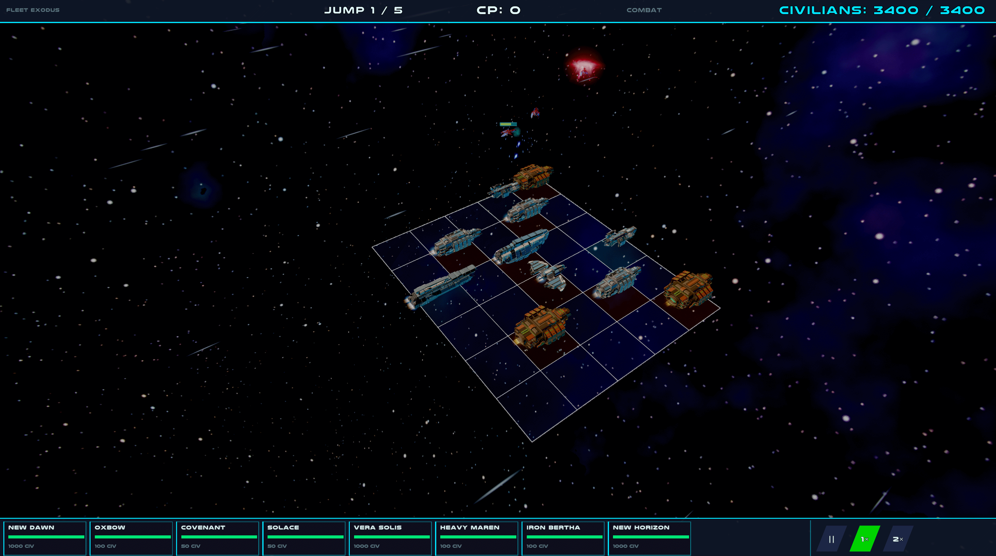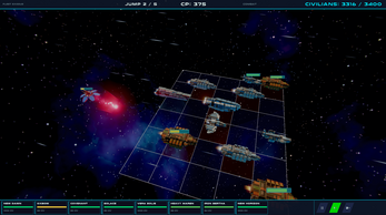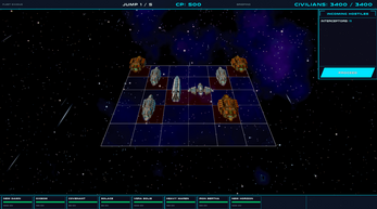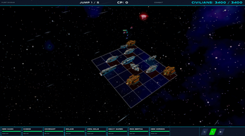 What is here: five full jumps, three warship types with distinct roles, a wave system with swarms, bombers, and a capital ship finale, and a leaderboard so you can see how your civilian count stacks up.